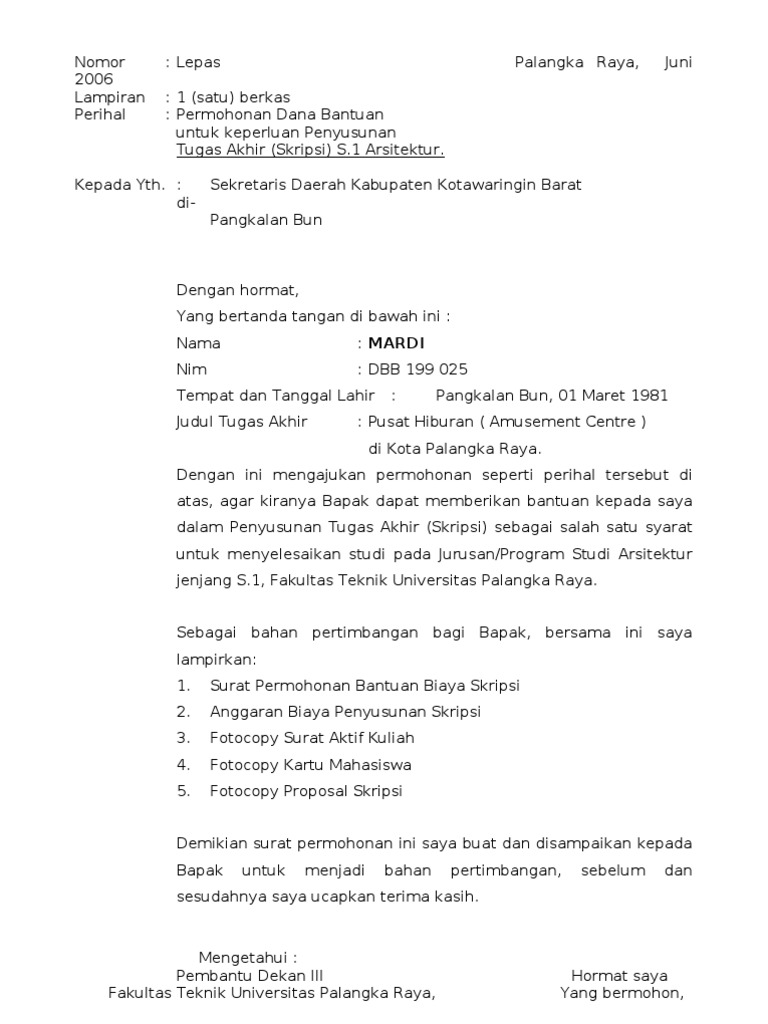 Surat Permohonan Dana Untuk Skripsi Pdf